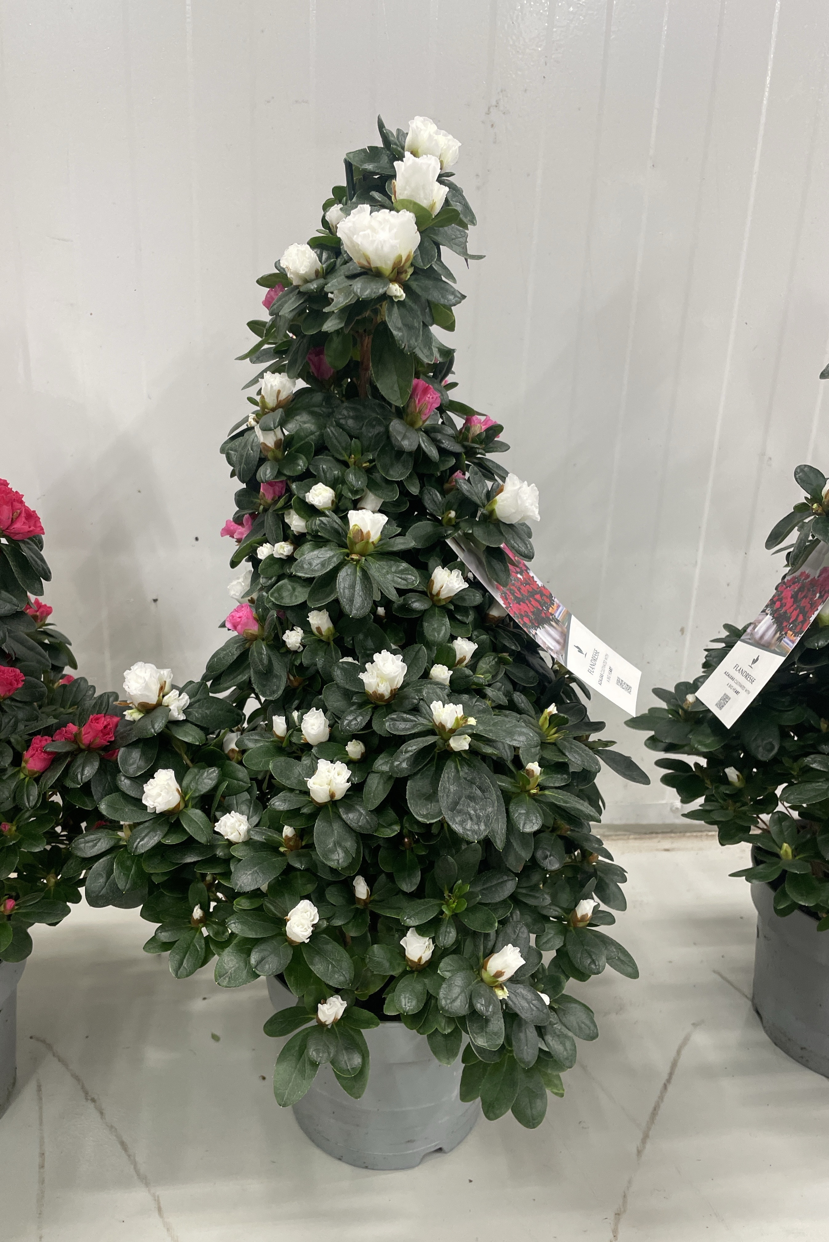 Азалия Микс - сама по себе отличается удивительным внешним видом, благодаря необычной «двойной» окраске соцветий, создающей некоторый мерцающий эффект. А если такое растение еще и удалось оформить в форме изысканной пирамиды, то его успех неизбежен. Великолепные розово-белые соцветия прекрасно смотрятся на темно-зеленом насыщенном фоне густой листвы и сразу же привлекают к себе внимание. Выбирая место для роскошной азалии в своем доме, важно помнить о необходимости держать ее в прохладном помещении, которое можно хорошо проветрить.