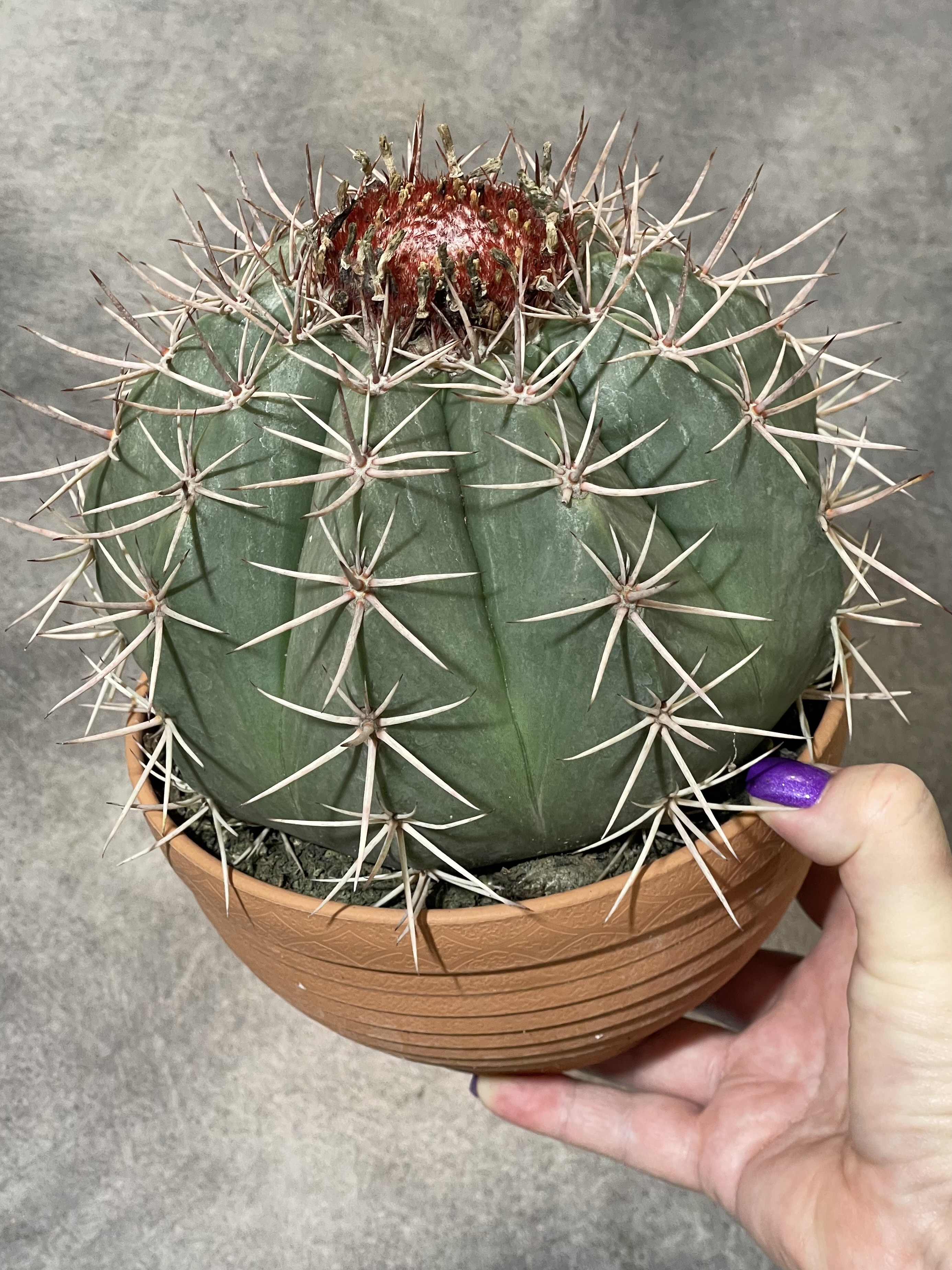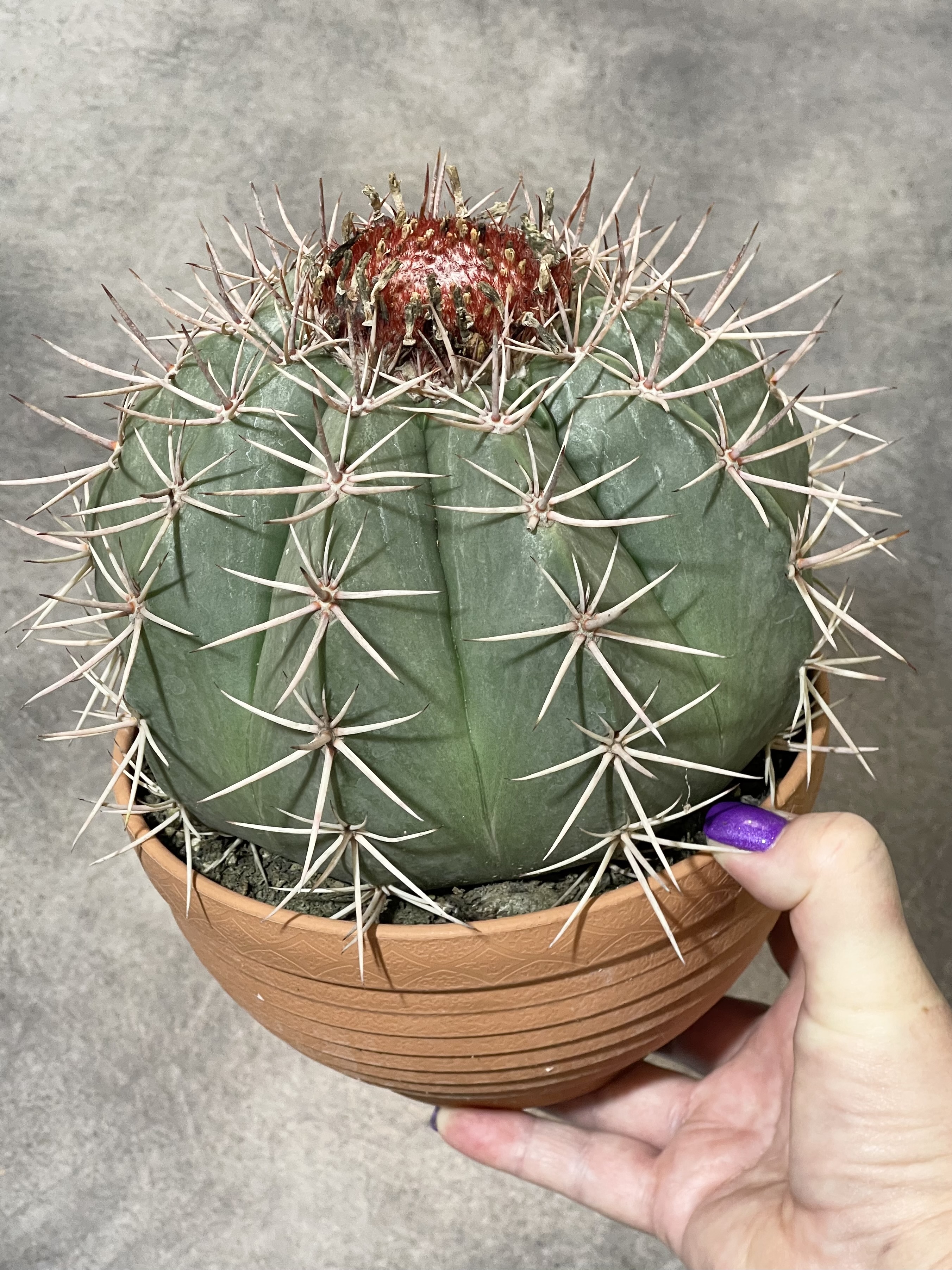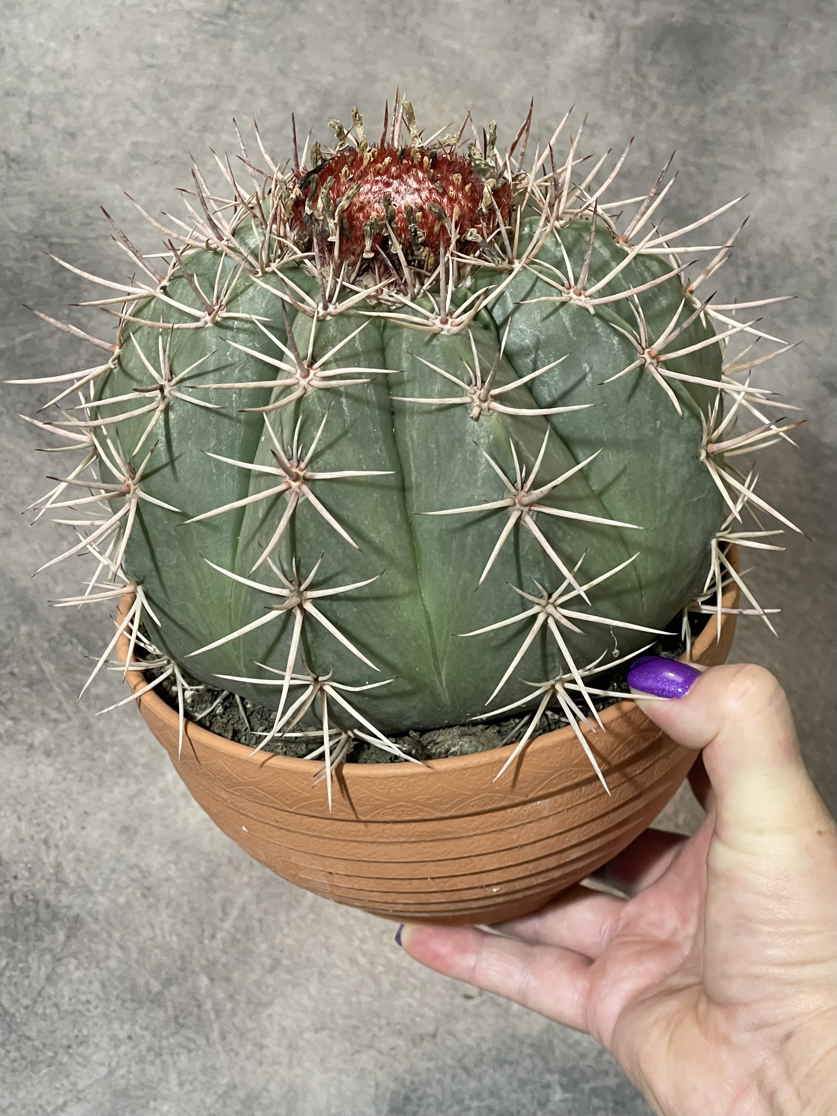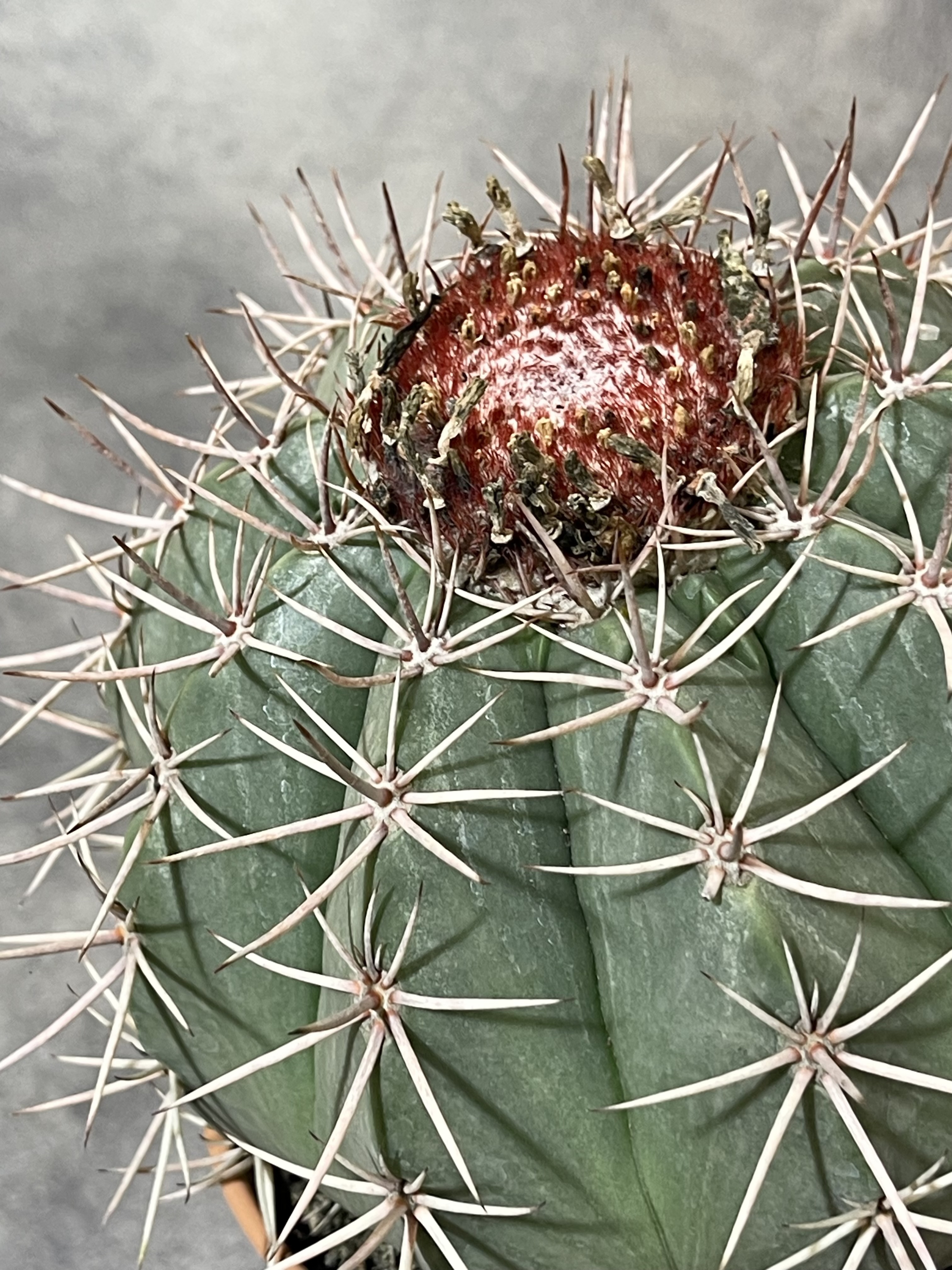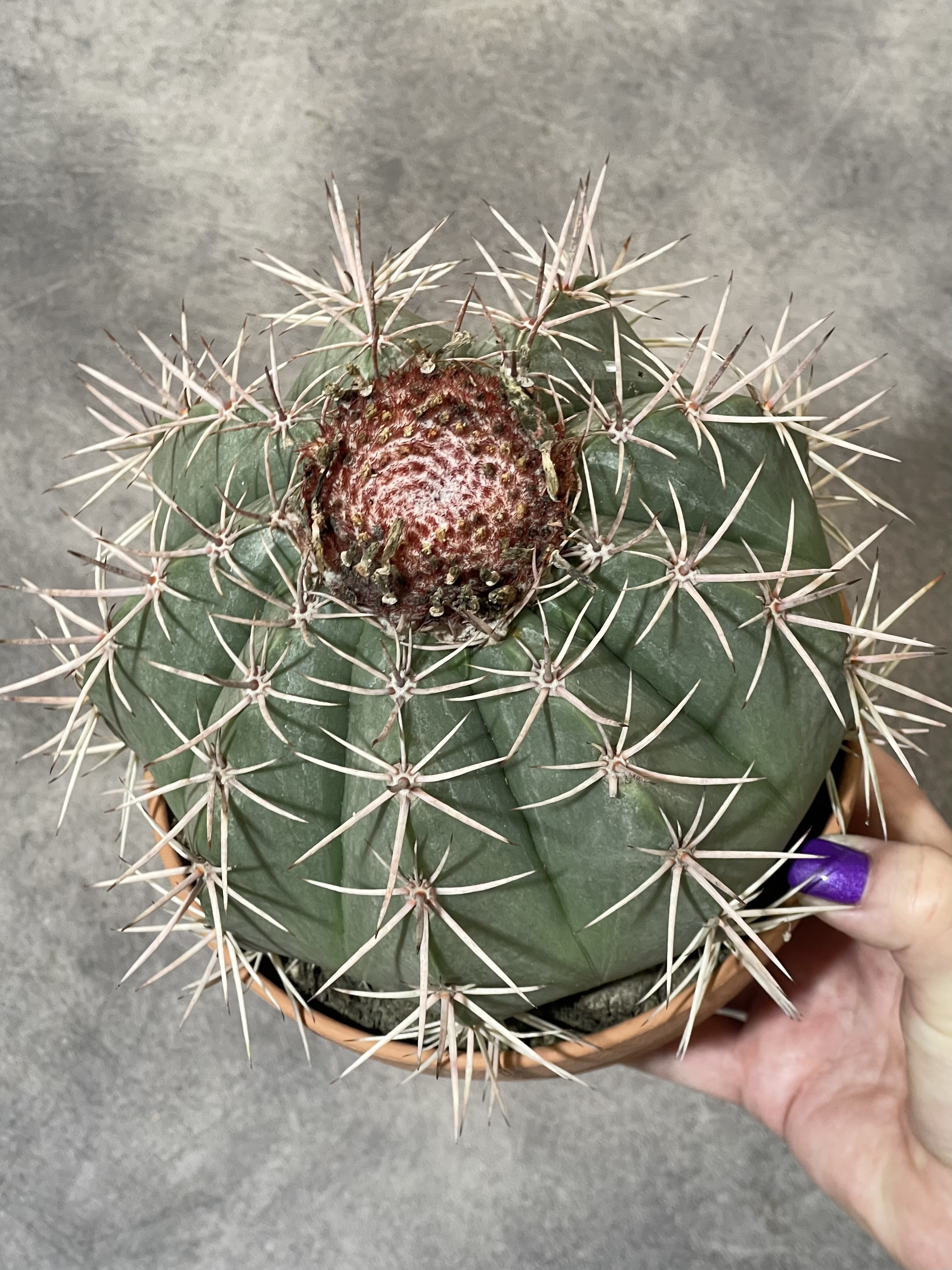 Его название состоит из латинского суффикса "мело" обозначающего кактус в форме яблока или дыни. На самом деле, одной из его особенностей является точно сферическая форма в сочетании с красивой головкой: это особый волосатый выступ, называется цеалий, обычно красноватый, появляется на вершине, когда растение достаточно зрелое, из которого распускаются цветы. С этого момента тело кактуса перестает увеличиваться в размерах, оставляя место для столбчатого роста головы, почти как если бы маленький красный кактус вырос прямо на вершине Мелокактуса!