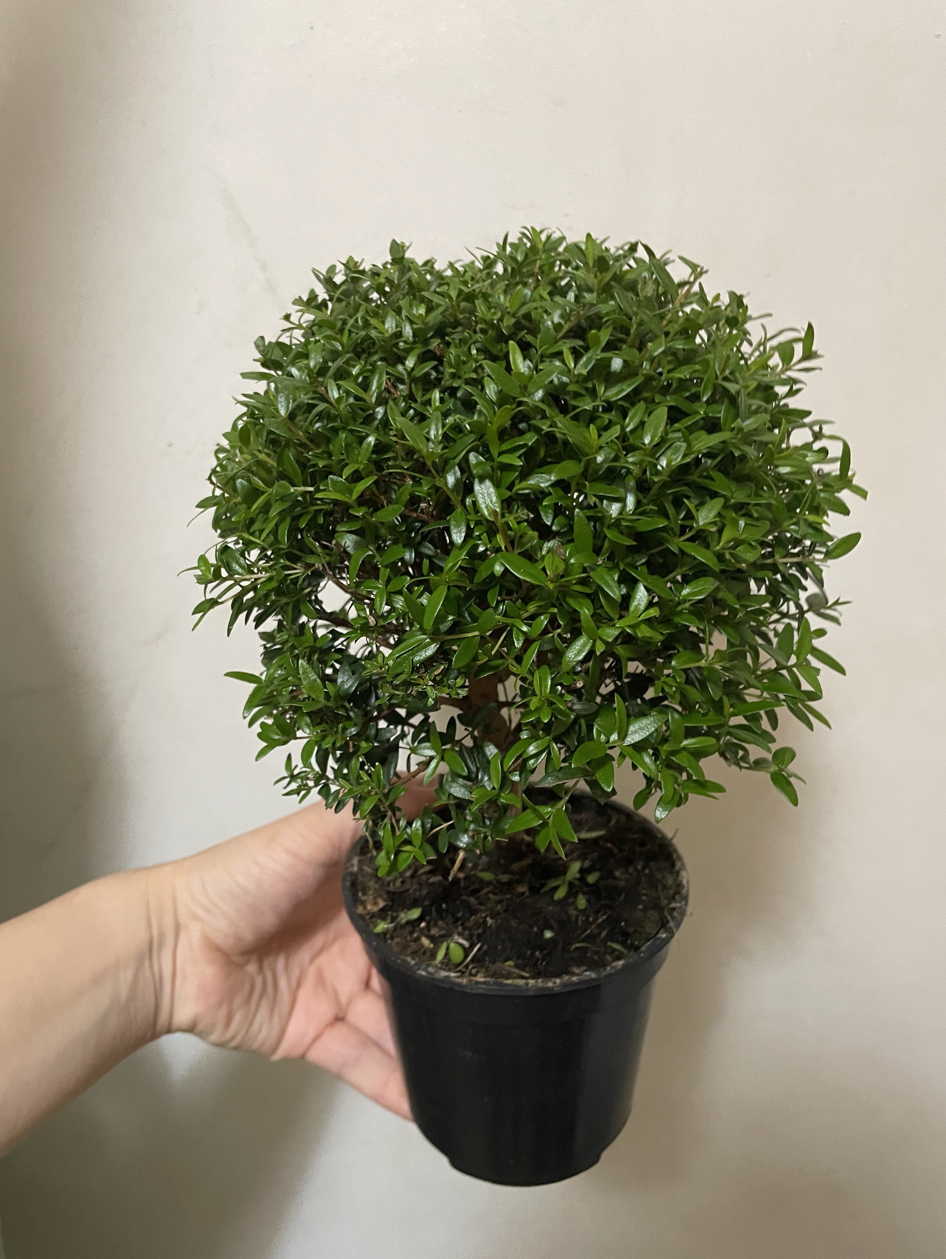 Красивоемини дерево. Комнатное растение высотой до 1 метра. Крона формируется на тонком стволе. При обрезке можно формировать форму шара, куба или конуса. Тонкие плотные листья, заостренные к кончикам. Кора ствола коричневая, чешуйчатая. Цветут обильно. Цветки в диаметре 2 см и источают приятный стойкий аромат. По окончанию цветения образуются плоды, размером с горошину, съедобные. Капризен к сухому воздуху и недополиву. Полив три-четыре раза в неделю, опрыскивания постоянно и подкормка в период цветения. Растет преимущественно на солнечной стороне.