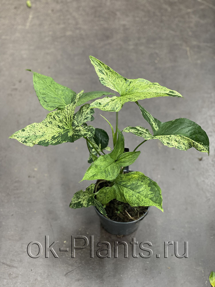 Знакомство с пестролистной красавицей из семейства Ароидные вас не разочарует. Каждый из копьевидных листьев этой многолетней лианы окрашен по-особому, повторения расцветки найти не удастся. При этом рисунок создан всего лишь из различных оттенков зеленого цвета. Слегка гофрированные листовые пластины, несмотря на свою плотность, удивительно изящны.